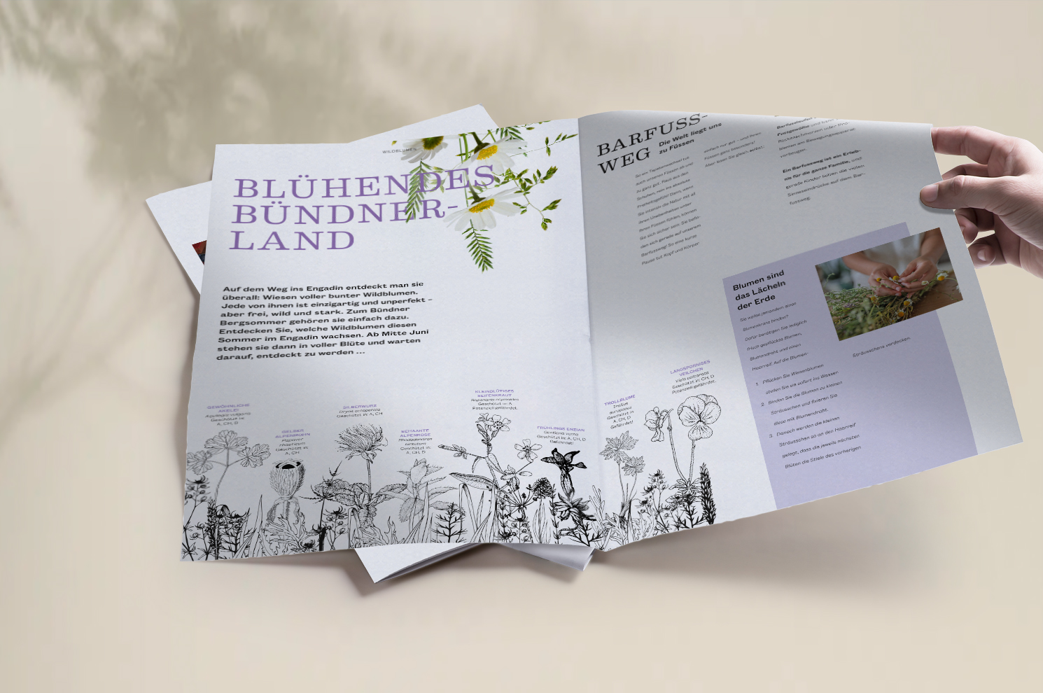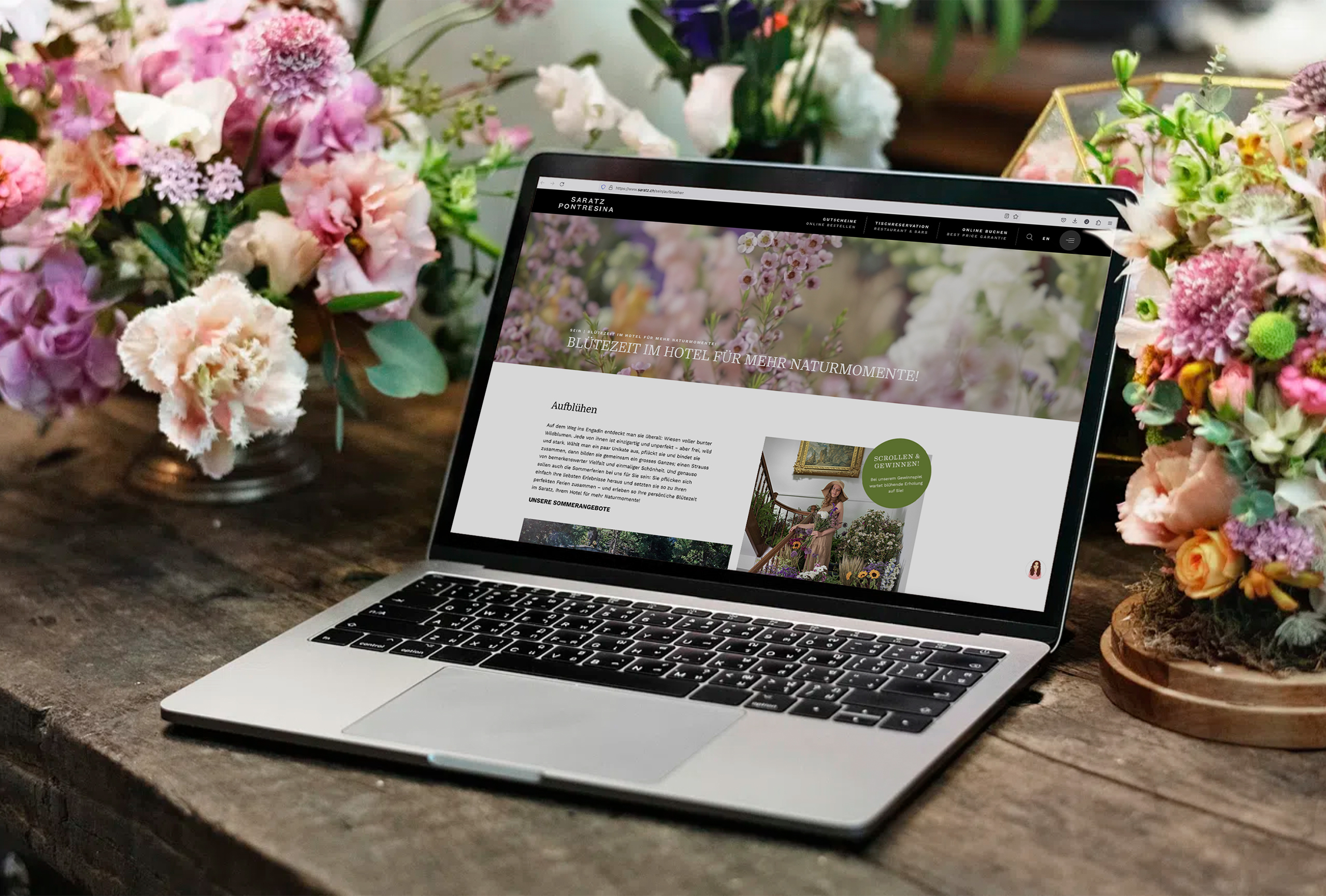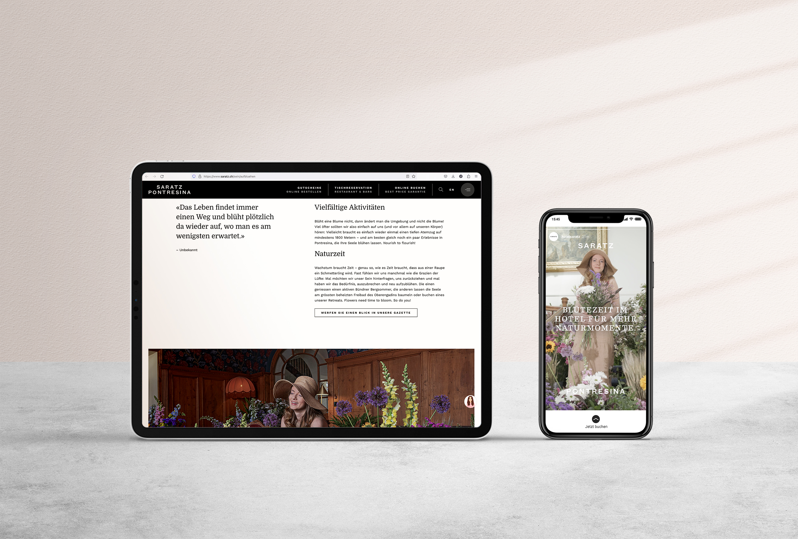 Mit einem aussergewöhnlichen Shooting brachten wir das Hotel Saratz Pontresina zum Aufblühen. Die daraus entstandene analoge & digitale Sommerkampagne zeigt, dass Gäste diesen Sommer hier auch ihre persönliche Blütezeit erleben: Sie pflücken sich nämlich einfach ihre liebsten Ferienerlebnisse heraus und setzen sie zu ihren ganz persönlichen und perfekten Sommerferien zusammen – fast so, wie einen Wildblumenstrauss. Kernelement der Kampagne ist eine 12-seitige Gazette: Auf Leserinnen und Leser warten blühende Freuden beim Stöbern und Entdecken!